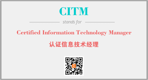 英文缩略词“CITM”经常作为“Certified Information Technology Manager”的英文缩写来使用,中文表示:“认证信息技术经理”。本文将详细介绍英文缩写词CITM所代表英文单词,其对应的中文拼音、详细解释以及在英语中的流行度。此外,还有关于缩略词CITM的分类、应用领域及相关应用示例等。