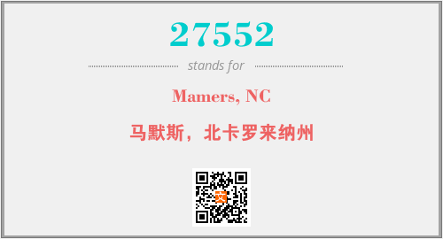 上述内容是“Mamers, NC”作为“27552”的缩写,解释为“马默斯,北卡罗来纳州”时的信息,以及英文缩略词27552所代表的英文单词,其对应的中文拼音、详细解释以及在英文中的流行度和相关分类、应用领域及应用示例等。