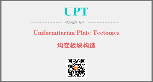 上述内容是“Uniformitarian Plate Tectonics”作为“UPT”的缩写,解释为“均变板块构造”时的信息,以及英文缩略词UPT所代表的英文单词,其对应的中文拼音、详细解释以及在英文中的流行度和相关分类、应用领域及应用示例等。