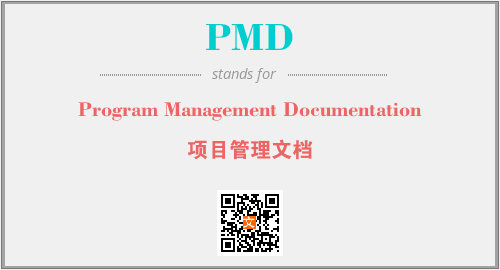 英文缩略词“PMD”经常作为“Program Management Documentation”的英文缩写来使用,中文表示:“项目管理文档”。本文将详细介绍英文缩写词PMD所代表英文单词,其对应的中文拼音、详细解释以及在英语中的流行度。此外,还有关于缩略词PMD的分类、应用领域及相关应用示例等。
