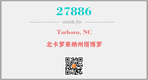 上述内容是“Tarboro, NC”作为“27886”的缩写,解释为“北卡罗来纳州塔博罗”时的信息,以及英文缩略词27886所代表的英文单词,其对应的中文拼音、详细解释以及在英文中的流行度和相关分类、应用领域及应用示例等。