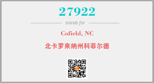 上述内容是“Cofield, NC”作为“27922”的缩写,解释为“北卡罗来纳州科菲尔德”时的信息,以及英文缩略词27922所代表的英文单词,其对应的中文拼音、详细解释以及在英文中的流行度和相关分类、应用领域及应用示例等。