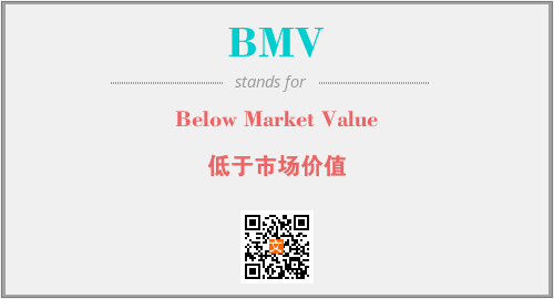 以上为Below Market Value英文缩略词BMV的中文解释,以及该英文缩写在英语的流行度、分类和应用领域方面的信息。