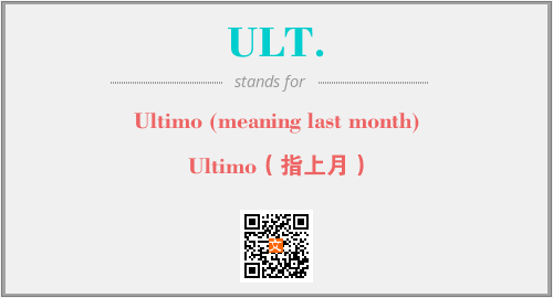 英文缩略词“ULT.”经常作为“Ultimo (meaning last month)”的英文缩写来使用,中文表示:“Ultimo(指上月)”。本文将详细介绍英文缩写词ULT.所代表英文单词,其对应的中文拼音、详细解释以及在英语中的流行度。此外,还有关于缩略词ULT.的分类、应用领域及相关应用示例等。