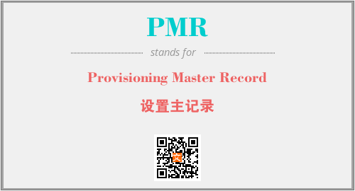 英文缩略词“PMR”经常作为“Provisioning Master Record”的英文缩写来使用,中文表示:“设置主记录”。本文将详细介绍英文缩写词PMR所代表英文单词,其对应的中文拼音、详细解释以及在英语中的流行度。此外,还有关于缩略词PMR的分类、应用领域及相关应用示例等。