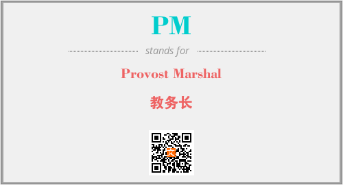 英文缩略词“PM”经常作为“Provost Marshal”的英文缩写来使用,中文表示:“教务长”。本文将详细介绍英文缩写词PM所代表英文单词,其对应的中文拼音、详细解释以及在英语中的流行度。此外,还有关于缩略词PM的分类、应用领域及相关应用示例等。