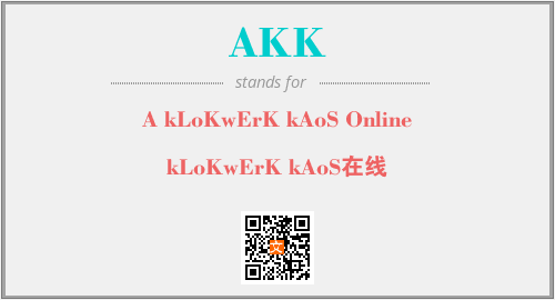 英文缩略词“AKK”经常作为“A kLoKwErK kAoS Online”的英文缩写来使用,中文表示:“kLoKwErK kAoS在线”。本文将详细介绍英文缩写词AKK所代表英文单词,其对应的中文拼音、详细解释以及在英语中的流行度。此外,还有关于缩略词AKK的分类、应用领域及相关应用示例等。