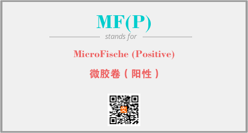上述内容是“MicroFische (Positive)”作为“MF(P)”的缩写,解释为“微胶卷(阳性)”时的信息,以及英文缩略词MF(P)所代表的英文单词,其对应的中文拼音、详细解释以及在英文中的流行度和相关分类、应用领域及应用示例等。