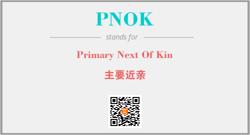 以上为Primary Next Of Kin英文缩略词PNOK的中文解释,以及该英文缩写在英语的流行度、分类和应用领域方面的信息。