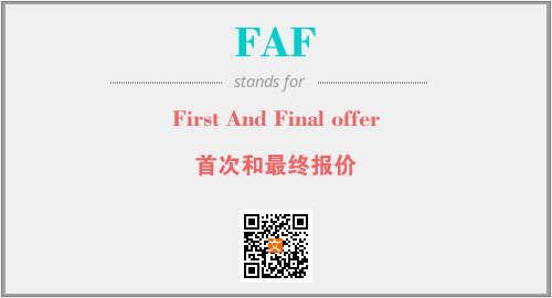 上述内容是“First And Final offer”作为“FAF”的缩写,解释为“首次和最终报价”时的信息,以及英文缩略词FAF所代表的英文单词,其对应的中文拼音、详细解释以及在英文中的流行度和相关分类、应用领域及应用示例等。