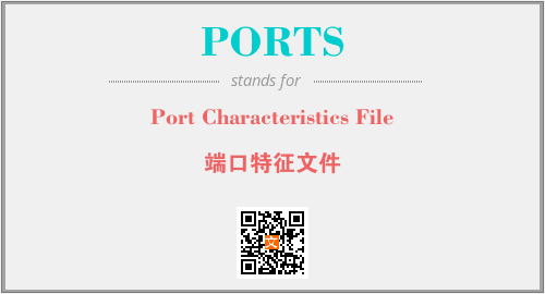 英文缩略词“PORTS”经常作为“Port Characteristics File”的英文缩写来使用,中文表示:“端口特征文件”。本文将详细介绍英文缩写词PORTS所代表英文单词,其对应的中文拼音、详细解释以及在英语中的流行度。此外,还有关于缩略词PORTS的分类、应用领域及相关应用示例等。