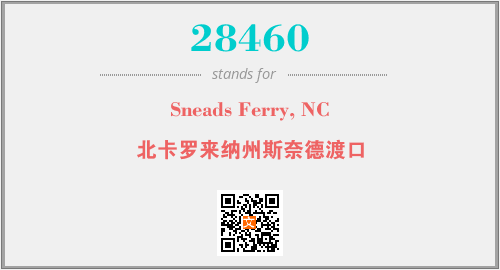 上述内容是“Sneads Ferry, NC”作为“28460”的缩写,解释为“北卡罗来纳州斯奈德渡口”时的信息,以及英文缩略词28460所代表的英文单词,其对应的中文拼音、详细解释以及在英文中的流行度和相关分类、应用领域及应用示例等。