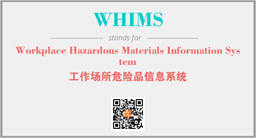 上述内容是“Workplace Hazardous Materials Information System”作为“WHIMS”的缩写,解释为“工作场所危险品信息系统”时的信息,以及英文缩略词WHIMS所代表的英文单词,其对应的中文拼音、详细解释以及在英文中的流行度和相关分类、应用领域及应用示例等。