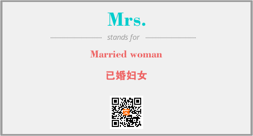 以上为Married woman英文缩略词Mrs.的中文解释,以及该英文缩写在英语的流行度、分类和应用领域方面的信息。