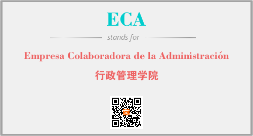 上述内容是“Empresa Colaboradora de la Administración”作为“ECA”的缩写,解释为“行政管理学院”时的信息,以及英文缩略词ECA所代表的英文单词,其对应的中文拼音、详细解释以及在英文中的流行度和相关分类、应用领域及应用示例等。