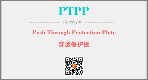 英文缩略词“PTPP”经常作为“Push Through Protection Plate”的英文缩写来使用,中文表示:“穿透保护板”。本文将详细介绍英文缩写词PTPP所代表英文单词,其对应的中文拼音、详细解释以及在英语中的流行度。此外,还有关于缩略词PTPP的分类、应用领域及相关应用示例等。