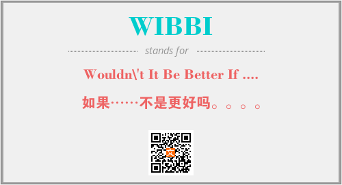 上述内容是“Wouldn\'t It Be Better If ....”作为“WIBBI”的缩写,解释为“如果……不是更好吗。。。。”时的信息,以及英文缩略词WIBBI所代表的英文单词,其对应的中文拼音、详细解释以及在英文中的流行度和相关分类、应用领域及应用示例等。