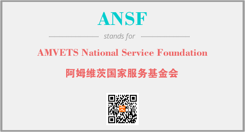 上述内容是“AMVETS National Service Foundation”作为“ANSF”的缩写,解释为“阿姆维茨国家服务基金会”时的信息,以及英文缩略词ANSF所代表的英文单词,其对应的中文拼音、详细解释以及在英文中的流行度和相关分类、应用领域及应用示例等。
