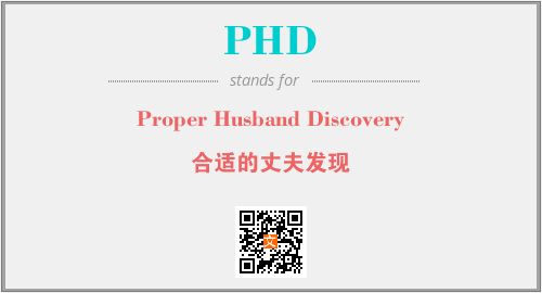 英文缩略词“PHD”经常作为“Proper Husband Discovery”的英文缩写来使用,中文表示:“合适的丈夫发现”。本文将详细介绍英文缩写词PHD所代表英文单词,其对应的中文拼音、详细解释以及在英语中的流行度。此外,还有关于缩略词PHD的分类、应用领域及相关应用示例等。