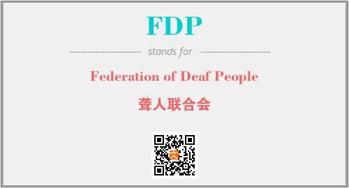 英文缩略词“FDP”经常作为“Federation of Deaf People”的英文缩写来使用,中文表示:“聋人联合会”。本文将详细介绍英文缩写词FDP所代表英文单词,其对应的中文拼音、详细解释以及在英语中的流行度。此外,还有关于缩略词FDP的分类、应用领域及相关应用示例等。