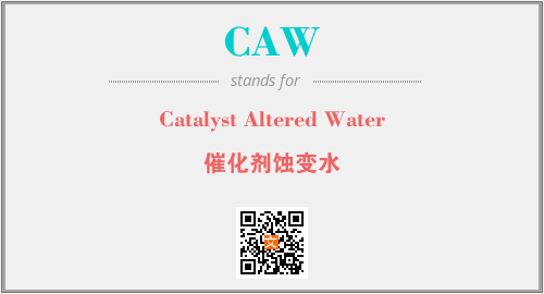 上述内容是“Catalyst Altered Water”作为“CAW”的缩写,解释为“催化剂蚀变水”时的信息,以及英文缩略词CAW所代表的英文单词,其对应的中文拼音、详细解释以及在英文中的流行度和相关分类、应用领域及应用示例等。