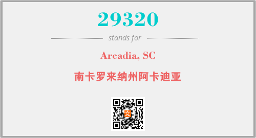 上述内容是“Arcadia, SC”作为“29320”的缩写,解释为“南卡罗来纳州阿卡迪亚”时的信息,以及英文缩略词29320所代表的英文单词,其对应的中文拼音、详细解释以及在英文中的流行度和相关分类、应用领域及应用示例等。