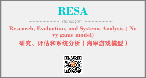 上述内容是“Research, Evaluation, and Systems Analysis ( Navy game model)”作为“RESA”的缩写,解释为“研究、评估和系统分析(海军游戏模型)”时的信息,以及英文缩略词RESA所代表的英文单词,其对应的中文拼音、详细解释以及在英文中的流行度和相关分类、应用领域及应用示例等。