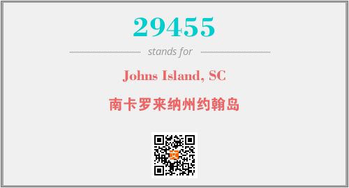 上述内容是“Johns Island, SC”作为“29455”的缩写,解释为“南卡罗来纳州约翰岛”时的信息,以及英文缩略词29455所代表的英文单词,其对应的中文拼音、详细解释以及在英文中的流行度和相关分类、应用领域及应用示例等。