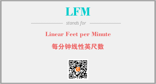 以上为Linear Feet per Minute英文缩略词LFM的中文解释,以及该英文缩写在英语的流行度、分类和应用领域方面的信息。
