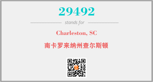 上述内容是“Charleston, SC”作为“29492”的缩写,解释为“南卡罗来纳州查尔斯顿”时的信息,以及英文缩略词29492所代表的英文单词,其对应的中文拼音、详细解释以及在英文中的流行度和相关分类、应用领域及应用示例等。