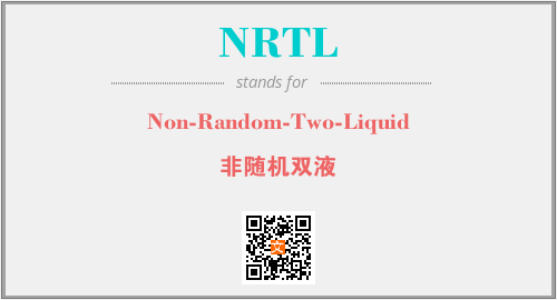 英文缩略词“NRTL”经常作为“Non-Random-Two-Liquid”的英文缩写来使用,中文表示:“非随机双液”。本文将详细介绍英文缩写词NRTL所代表英文单词,其对应的中文拼音、详细解释以及在英语中的流行度。此外,还有关于缩略词NRTL的分类、应用领域及相关应用示例等。