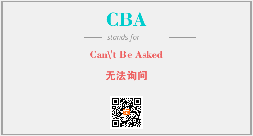 以上为Can\'t Be Asked英文缩略词CBA的中文解释,以及该英文缩写在英语的流行度、分类和应用领域方面的信息。