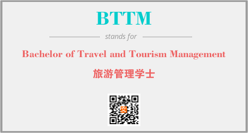 英文缩略词“BTTM”经常作为“Bachelor of Travel and Tourism Management”的英文缩写来使用,中文表示:“旅游管理学士”。本文将详细介绍英文缩写词BTTM所代表英文单词,其对应的中文拼音、详细解释以及在英语中的流行度。此外,还有关于缩略词BTTM的分类、应用领域及相关应用示例等。