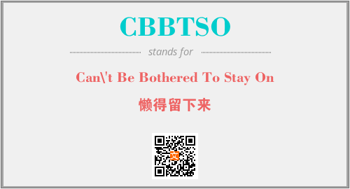 以上为Can\'t Be Bothered To Stay On英文缩略词CBBTSO的中文解释,以及该英文缩写在英语的流行度、分类和应用领域方面的信息。