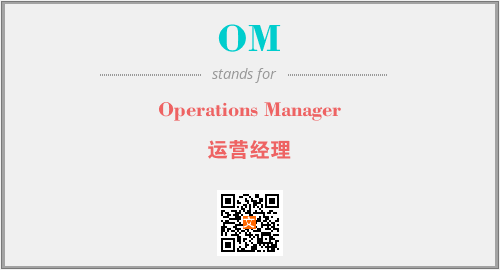 英文缩略词“OM”经常作为“Operations Manager”的英文缩写来使用,中文表示:“运营经理”。本文将详细介绍英文缩写词OM所代表英文单词,其对应的中文拼音、详细解释以及在英语中的流行度。此外,还有关于缩略词OM的分类、应用领域及相关应用示例等。
