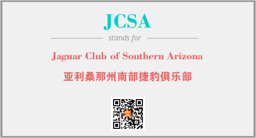 英文缩略词“JCSA”经常作为“Jaguar Club of Southern Arizona”的英文缩写来使用,中文表示:“亚利桑那州南部捷豹俱乐部”。本文将详细介绍英文缩写词JCSA所代表英文单词,其对应的中文拼音、详细解释以及在英语中的流行度。此外,还有关于缩略词JCSA的分类、应用领域及相关应用示例等。