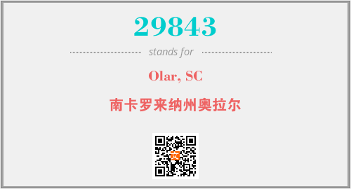 上述内容是“Olar, SC”作为“29843”的缩写,解释为“南卡罗来纳州奥拉尔”时的信息,以及英文缩略词29843所代表的英文单词,其对应的中文拼音、详细解释以及在英文中的流行度和相关分类、应用领域及应用示例等。