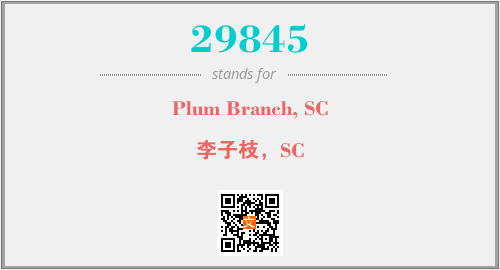 上述内容是“Plum Branch, SC”作为“29845”的缩写,解释为“李子枝,SC”时的信息,以及英文缩略词29845所代表的英文单词,其对应的中文拼音、详细解释以及在英文中的流行度和相关分类、应用领域及应用示例等。