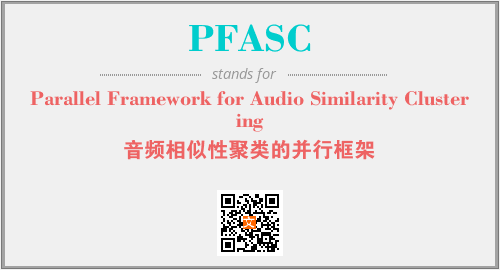 上述内容是“Parallel Framework for Audio Similarity Clustering”作为“PFASC”的缩写,解释为“音频相似性聚类的并行框架”时的信息,以及英文缩略词PFASC所代表的英文单词,其对应的中文拼音、详细解释以及在英文中的流行度和相关分类、应用领域及应用示例等。