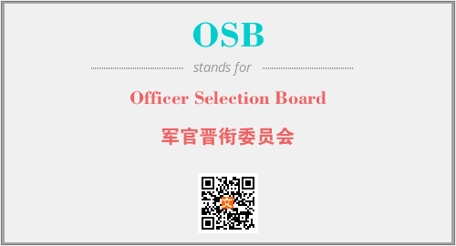 英文缩略词“OSB”经常作为“Officer Selection Board”的英文缩写来使用,中文表示:“军官晋衔委员会”。本文将详细介绍英文缩写词OSB所代表英文单词,其对应的中文拼音、详细解释以及在英语中的流行度。此外,还有关于缩略词OSB的分类、应用领域及相关应用示例等。