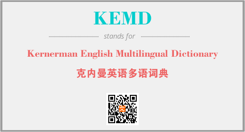 英文缩略词“KEMD”经常作为“Kernerman English Multilingual Dictionary”的英文缩写来使用,中文表示:“克内曼英语多语词典”。本文将详细介绍英文缩写词KEMD所代表英文单词,其对应的中文拼音、详细解释以及在英语中的流行度。此外,还有关于缩略词KEMD的分类、应用领域及相关应用示例等。