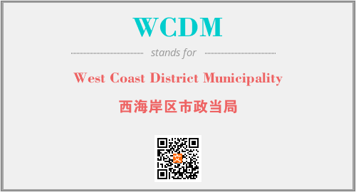 上述内容是“West Coast District Municipality”作为“WCDM”的缩写,解释为“西海岸区市政当局”时的信息,以及英文缩略词WCDM所代表的英文单词,其对应的中文拼音、详细解释以及在英文中的流行度和相关分类、应用领域及应用示例等。