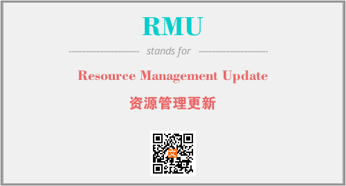 英文缩略词“RMU”经常作为“Resource Management Update”的英文缩写来使用,中文表示:“资源管理更新”。本文将详细介绍英文缩写词RMU所代表英文单词,其对应的中文拼音、详细解释以及在英语中的流行度。此外,还有关于缩略词RMU的分类、应用领域及相关应用示例等。