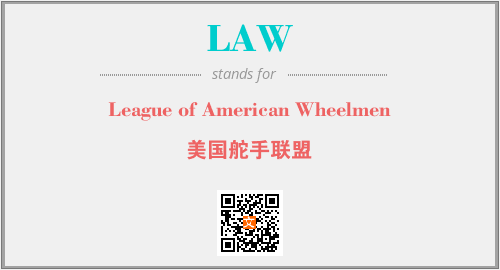 英文缩略词“LAW”经常作为“League of American Wheelmen”的英文缩写来使用,中文表示:“美国舵手联盟”。本文将详细介绍英文缩写词LAW所代表英文单词,其对应的中文拼音、详细解释以及在英语中的流行度。此外,还有关于缩略词LAW的分类、应用领域及相关应用示例等。