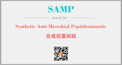 上述内容是“Synthetic Anti-Microbial Peptidomimetic”作为“SAMP”的缩写,解释为“合成抗菌拟肽”时的信息,以及英文缩略词SAMP所代表的英文单词,其对应的中文拼音、详细解释以及在英文中的流行度和相关分类、应用领域及应用示例等。