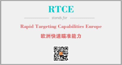 上述内容是“Rapid Targeting Capabilities Europe”作为“RTCE”的缩写,解释为“欧洲快速瞄准能力”时的信息,以及英文缩略词RTCE所代表的英文单词,其对应的中文拼音、详细解释以及在英文中的流行度和相关分类、应用领域及应用示例等。