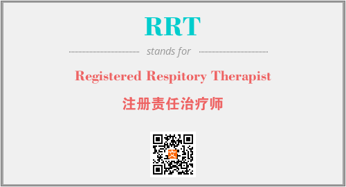 英文缩略词“RRT”经常作为“Registered Respitory Therapist”的英文缩写来使用,中文表示:“注册责任治疗师”。本文将详细介绍英文缩写词RRT所代表英文单词,其对应的中文拼音、详细解释以及在英语中的流行度。此外,还有关于缩略词RRT的分类、应用领域及相关应用示例等。