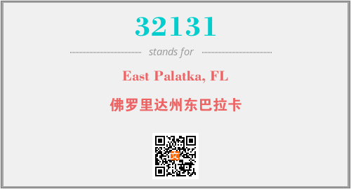 上述内容是“East Palatka, FL”作为“32131”的缩写,解释为“佛罗里达州东巴拉卡”时的信息,以及英文缩略词32131所代表的英文单词,其对应的中文拼音、详细解释以及在英文中的流行度和相关分类、应用领域及应用示例等。