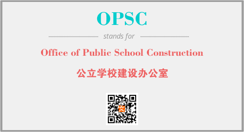 上述内容是“Office of Public School Construction”作为“OPSC”的缩写,解释为“公立学校建设办公室”时的信息,以及英文缩略词OPSC所代表的英文单词,其对应的中文拼音、详细解释以及在英文中的流行度和相关分类、应用领域及应用示例等。