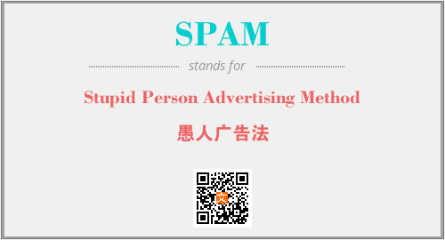 英文缩略词“SPAM”经常作为“Stupid Person Advertising Method”的英文缩写来使用,中文表示:“愚人广告法”。本文将详细介绍英文缩写词SPAM所代表英文单词,其对应的中文拼音、详细解释以及在英语中的流行度。此外,还有关于缩略词SPAM的分类、应用领域及相关应用示例等。
